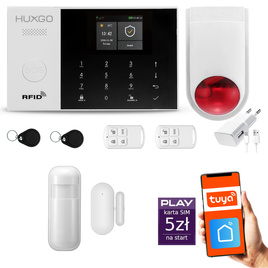 HUXGO® HXA005 - Sistema de seguridad inalámbrico WiFi + GSM con 3x detector de movimiento y 1x sensor para puerta / ventana | KIT de sistema de alarma para el hogar con App TUYA