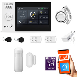 HUXGO® HXA007 - Sistema de seguridad inalámbrico WiFi + GSM con 5x detector de movimiento y 5x sensor para puerta / ventana | KIT de sistema de alarma para el hogar con App TUYA
