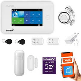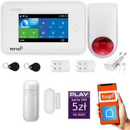 HUXGO® HXA006 - Sistema di allarme wireless WiFi + GSM con 3x Rilevatore di movimento & 3x Sensore per porte e finestre | Allarme casa senza fili Kit con app TUYA