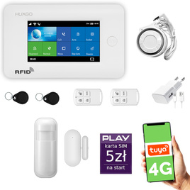 HUXGO® HXA006 - Sistema di allarme wireless WiFi + GSM 4G con 3x Rilevatore di movimento & 1x Sensore per porte e finestre | Allarme casa senza fili Kit con app TUYA